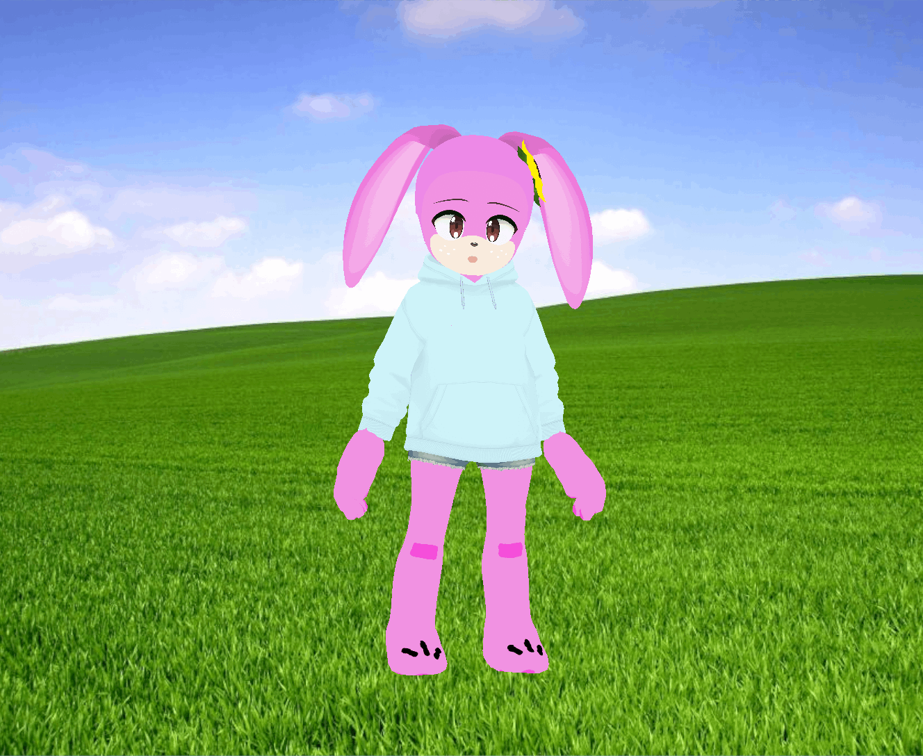 Lucy Cottontail is a kind and gentle pink rabbit who came from the countryside.